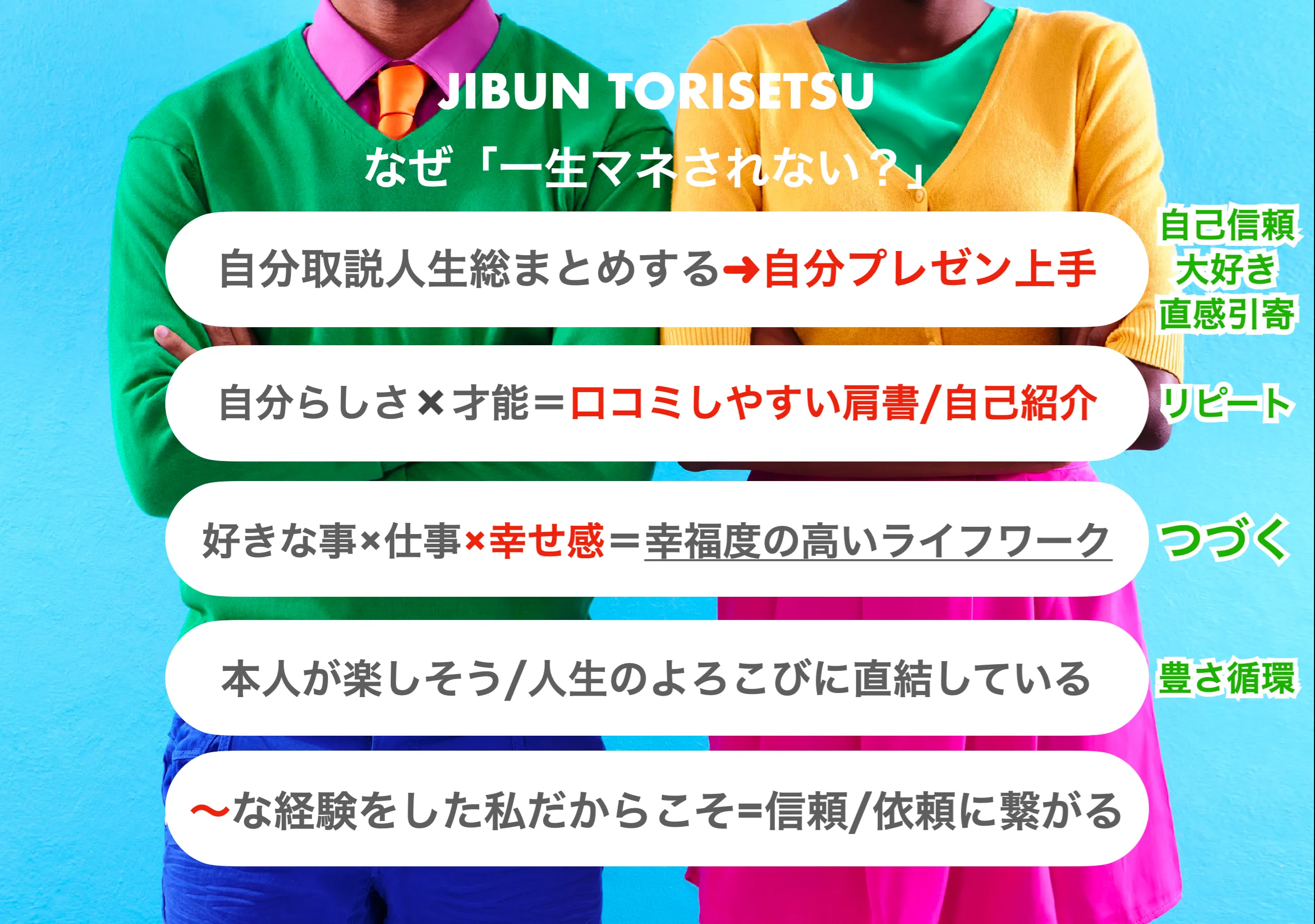 「好きなことも、趣味も夢ももっていない」状態でしたが、ライフワークが歌(しかも世界のだれもやったことのない、大好きなハミング)を選んだからこそ、世界各国に呼ばれるようになり唯一無二の「一生マネされない自分ブランド」がわかって、しっかりと生活できるお仕事にすることができました。なぜ私がこれをしているかというと、大好きなことがわかっても、お金のブロックや、お仕事にする手前で、大好きなことをやめてしまう「才能あふれる友人」が周りにたくさんいて、【私の経験をシェアすることで、好きなことを諦めてしまう人を一人でも少なくしたい】と思ったことから、この講座を人生をかけてつくりました^^